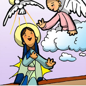 “Entró el ángel en su presencia y le saludó así: DIOS TE SALVE MARÍA, LLENA DE GRACIA, EL SEÑOR ESTÁ CONTIGO”