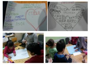Una vez confeccionados los corazones vamos a la capilla y junto a los padres.