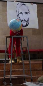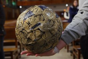 Al acabar, traemos un nuevo globo del mundo, pero hinchado y bonito, y lo colocamos al lado del otro.